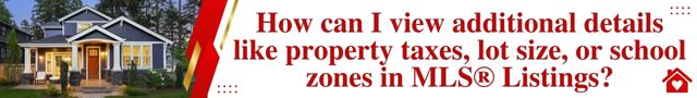 How can I view additional details like property taxes, lot size, or school zones in MLS® listings?